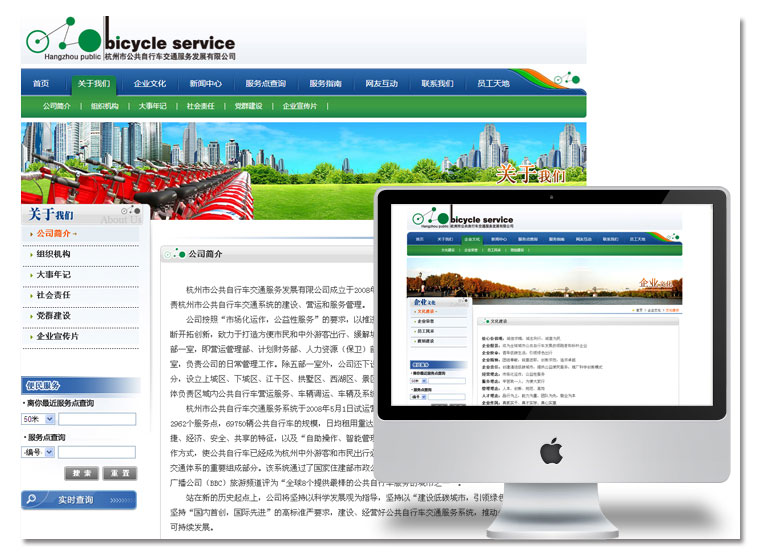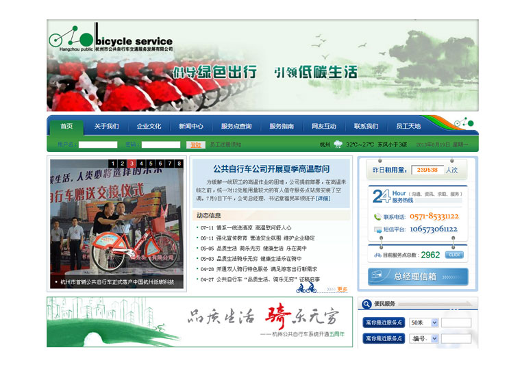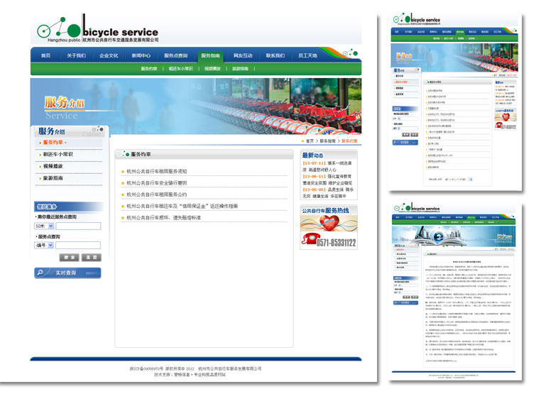杭州市公共自行車交通服務(wù)作為杭州城市生活的一大特色,如何體現(xiàn)其綠色、節(jié)能、科學(xué)、創(chuàng)新的生活的觀念是網(wǎng)站的首要需求。