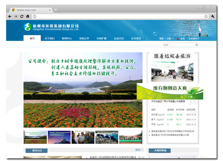 杭州市環(huán)境集團(tuán)已有22年發(fā)展歷史,因而,網(wǎng)站如何保持在傳承優(yōu)秀傳統(tǒng)的基礎(chǔ)上展現(xiàn)創(chuàng)新,如何尋求最優(yōu)的平衡點,最大化體現(xiàn)公司品牌、理念、活力與時代張力是公司的建站的出發(fā)點。此外,網(wǎng)站如何配合公司的多元發(fā)展,最大程度的展示公司綜合實力與品牌合力是公司對網(wǎng)站建設(shè)的又一期望。