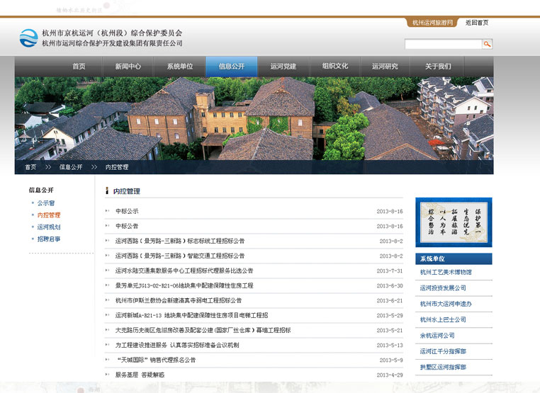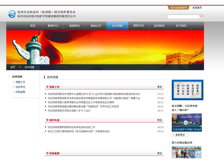 首先,杭州市京杭運(yùn)河(杭州段)綜合保護(hù)委員會(huì)由于有較強(qiáng)的國有、政府背景,加上其市場化運(yùn)作體系,要求其公司網(wǎng)站信息實(shí)現(xiàn)綜合性、公開性的特點(diǎn)。