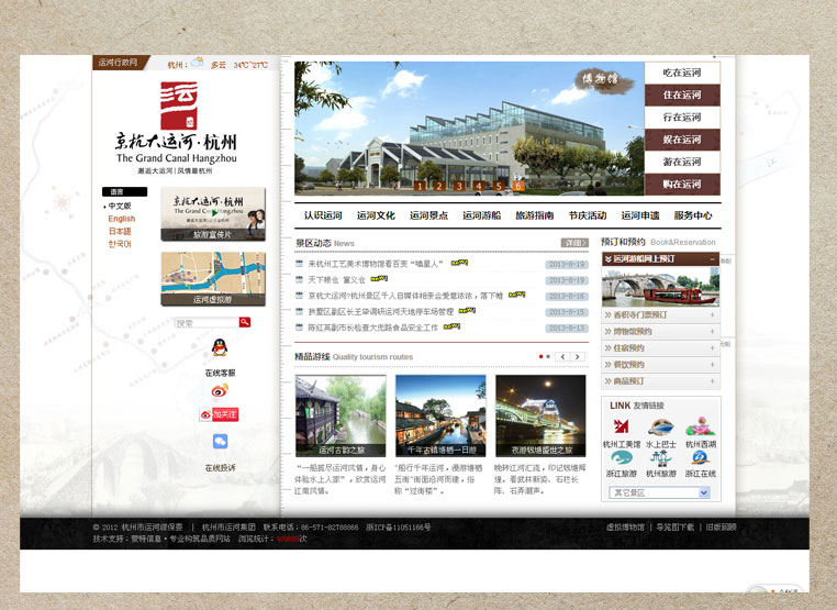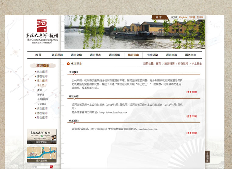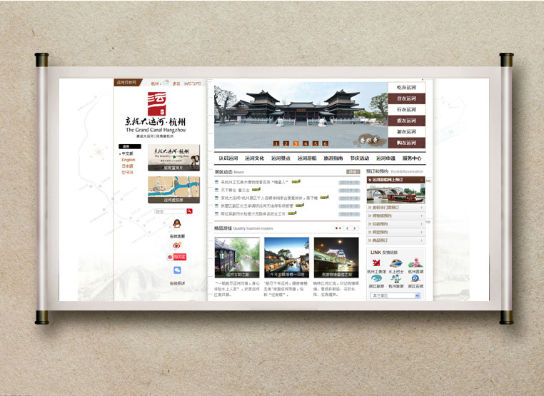 杭州運(yùn)河網(wǎng)站在散發(fā)著文化氣息的同時(shí)透露著濃厚的旅游特征,實(shí)現(xiàn)了歷史文化與現(xiàn)代風(fēng)情的完美結(jié)合,得到了市民的廣泛認(rèn)可。