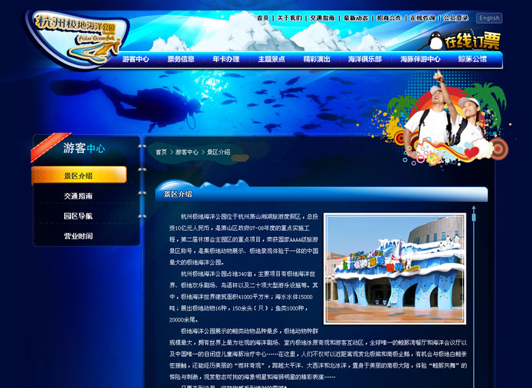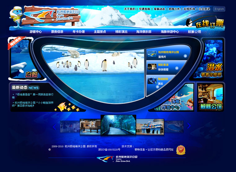 建設(shè)后的極地海洋公園網(wǎng)站,成功展現(xiàn)了公園的特色與風(fēng)采,樹立了公司的充滿活力與生命力品牌形象,實(shí)現(xiàn)了公司網(wǎng)絡(luò)運(yùn)營與服務(wù)的建設(shè)目的。