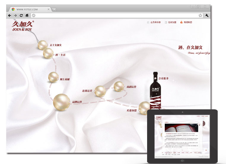 選用流水線式的頁面呈現(xiàn)效果,完整傳達久加久成熟的運營發(fā)展模式與一站式的服務體驗。搭配FLASH與圖片效果,靈動體現(xiàn)久加久的高段品質與生活文化。