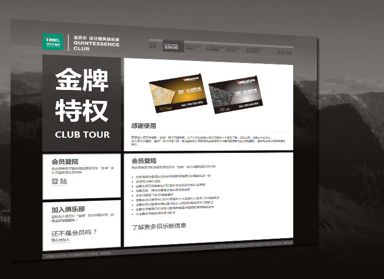 蒙特首先通過對(duì)同類行業(yè)的整體分析,尋求共性的規(guī)律,以做到“存同求異”,其次,注入諾貝爾的品牌風(fēng)格,結(jié)合俱樂部高端的定位目標(biāo),策劃簡約大氣的網(wǎng)頁風(fēng)格,同時(shí)引入復(fù)古、現(xiàn)代、都市等多種細(xì)節(jié)特色,滿足不同人群審美需求。