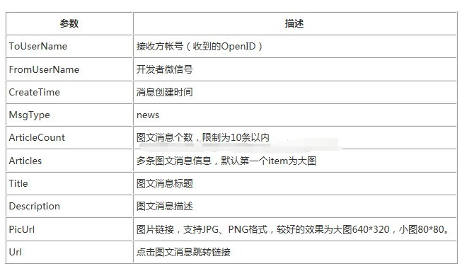 通過(guò)微信官方的消息接口指南,能夠看到對(duì)圖文消息的參數(shù)介紹,例如以下圖所看到的: