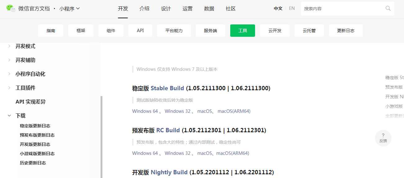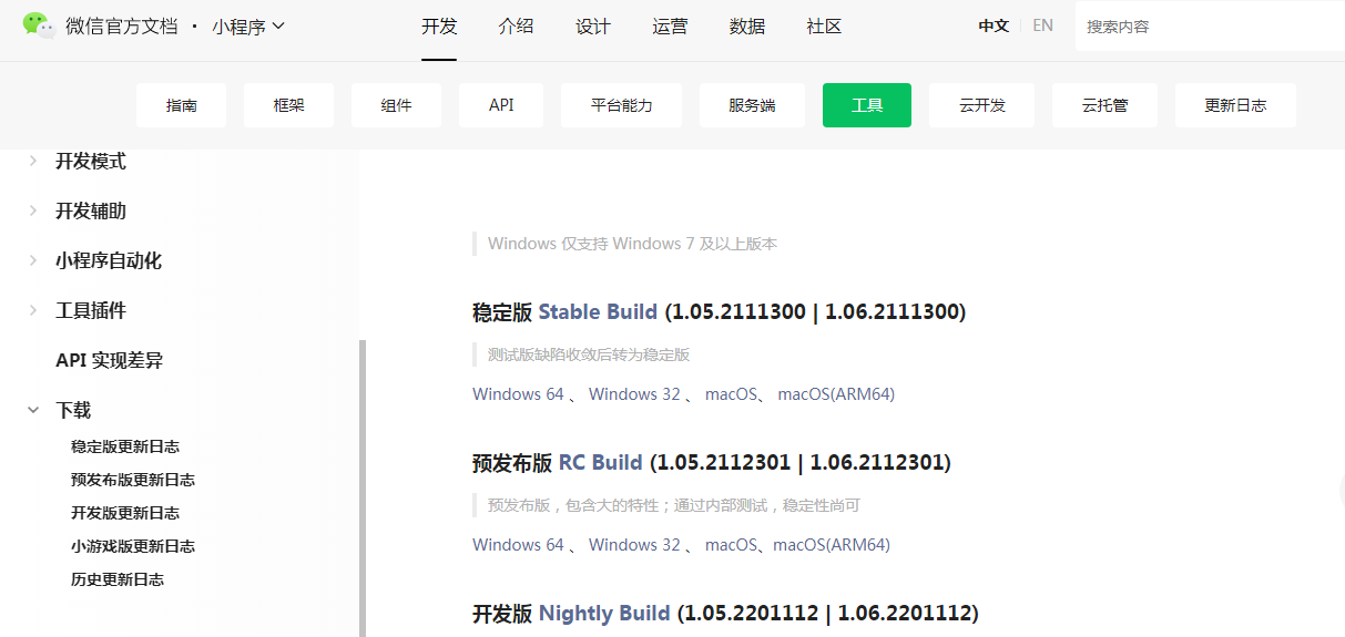 微信小程序開發(fā)平臺(tái)中增加了很多版本的微信小程序開發(fā)工具,可以根據(jù)性能和功能進(jìn)行選擇,用途不同,選擇的版本也不同。具體大家可以參考圖片去查找。